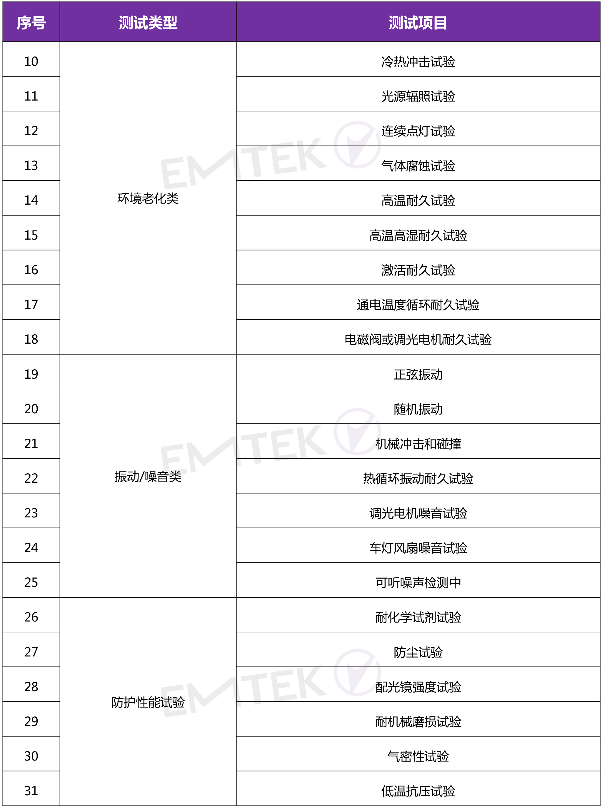 考核車燈及其噴漆件材料化學(xué)性能,比如耐試劑、耐磨性能、附著力、硬度、劃痕、有害物質(zhì)限定試驗(yàn)、燃燒特性等試驗(yàn)。