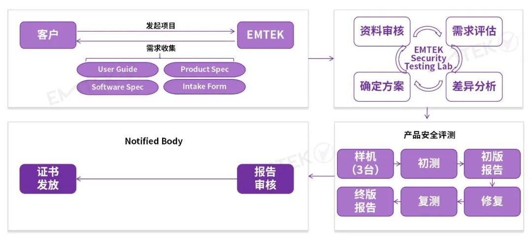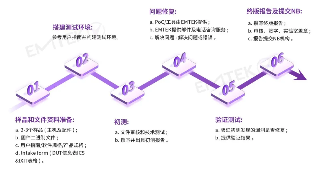 制造商在沒有評(píng)估能力或能力不夠的情況下,建議與有資質(zhì)的評(píng)測實(shí)驗(yàn)室及公告機(jī)構(gòu)去合作。EN 18031做為一個(gè)新的且較復(fù)雜的標(biāo)準(zhǔn),在合規(guī)道路上還有較長的路要走,制造商做自我聲明會(huì)存在在評(píng)估技術(shù)和合規(guī)理解上的不足,建議尋求一家靠譜有資質(zhì)的第三方測試實(shí)驗(yàn)室進(jìn)行評(píng)測,并由NB機(jī)構(gòu)審核發(fā)證以共同完成產(chǎn)品的合規(guī),避免出現(xiàn)評(píng)測不順利或影響產(chǎn)品上市的情況出現(xiàn)。