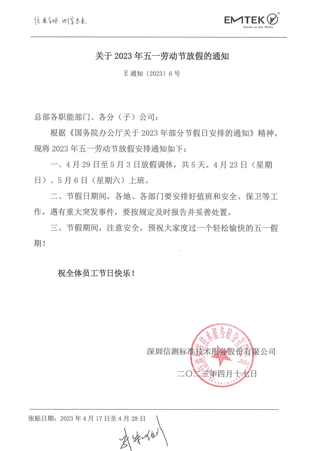 關(guān)于2023年五一勞動節(jié)放假的通知