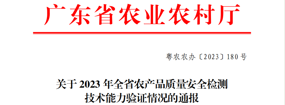 12月26日,廣東省農(nóng)業(yè)農(nóng)村廳發(fā)文通報(bào)2023年全省農(nóng)產(chǎn)品質(zhì)量安全檢測(cè)技術(shù)能力驗(yàn)證情況。在本次能力驗(yàn)證活動(dòng)中,信測(cè)標(biāo)準(zhǔn)再次取得4項(xiàng)全A的成績(jī),展現(xiàn)出了過(guò)硬的專業(yè)素質(zhì)和高超的技能水平。