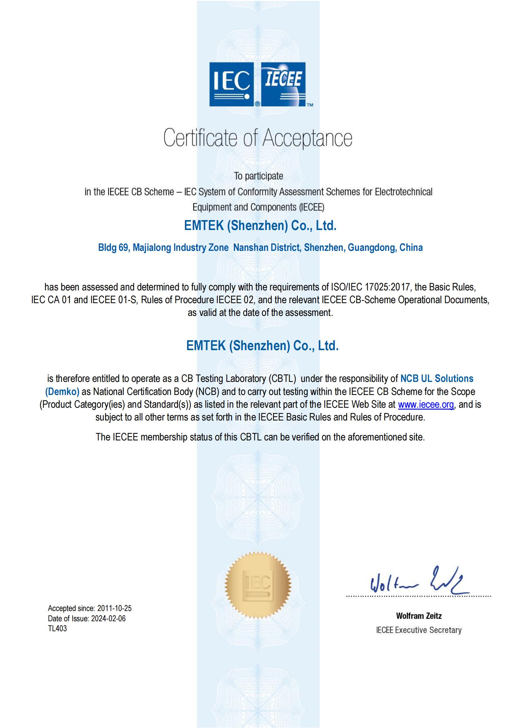 IECEE的認(rèn)證授權(quán)資質(zhì)證書