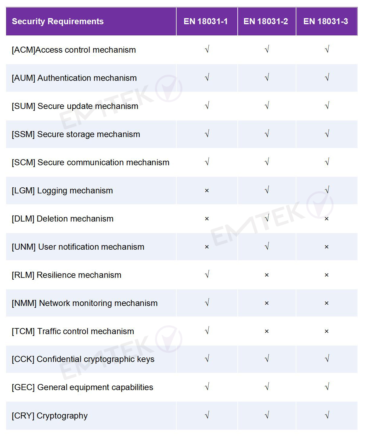 EN18031各子標(biāo)準(zhǔn)與安全需求對(duì)應(yīng)表