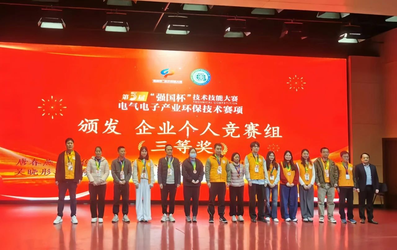 2025年1月11日,備受矚目的第三屆“強國杯”技術技能大賽電氣電子產(chǎn)業(yè)環(huán)保技術賽項總決賽圓滿落幕。廣州信測標準技術服務有限公司參賽選手歷經(jīng)激烈角逐、一路過關斬將,憑借扎實的專業(yè)知識、豐富的實踐經(jīng)驗以及堅韌不拔的頑強毅力,最終榮獲三等獎的好成績,充分展現(xiàn)出專業(yè)技能,彰顯出拼搏奮進、勇于創(chuàng)新的競技精神。