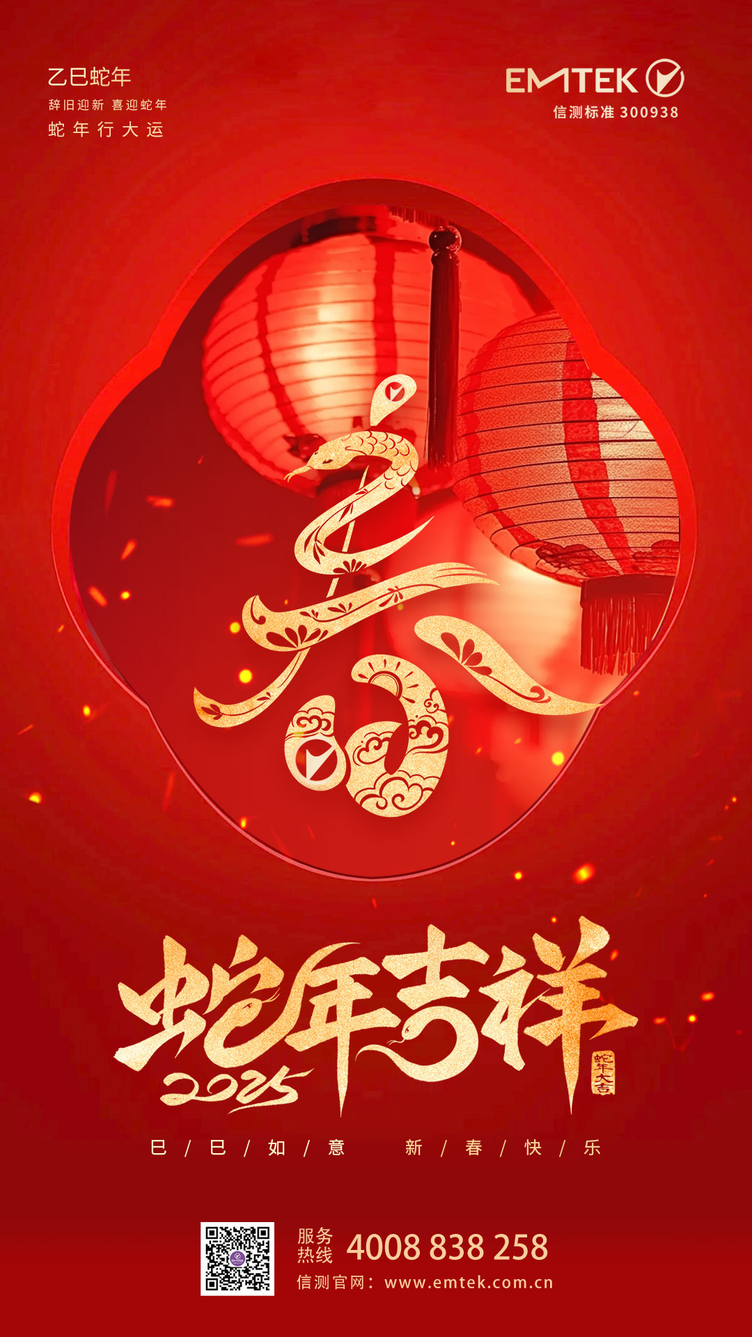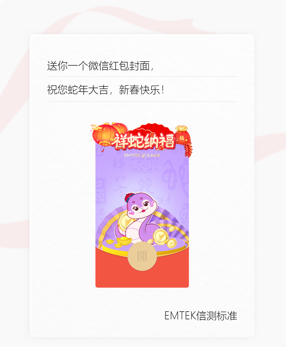 蛇年新春將至,EMTEK信測標準向一直以來關(guān)心、信任和支持我們發(fā)展的各級領(lǐng)導(dǎo)、合作伙伴、廣大客戶以及辛勤付出的全體員工及家屬,致以最誠摯的問候和最美好的祝福!