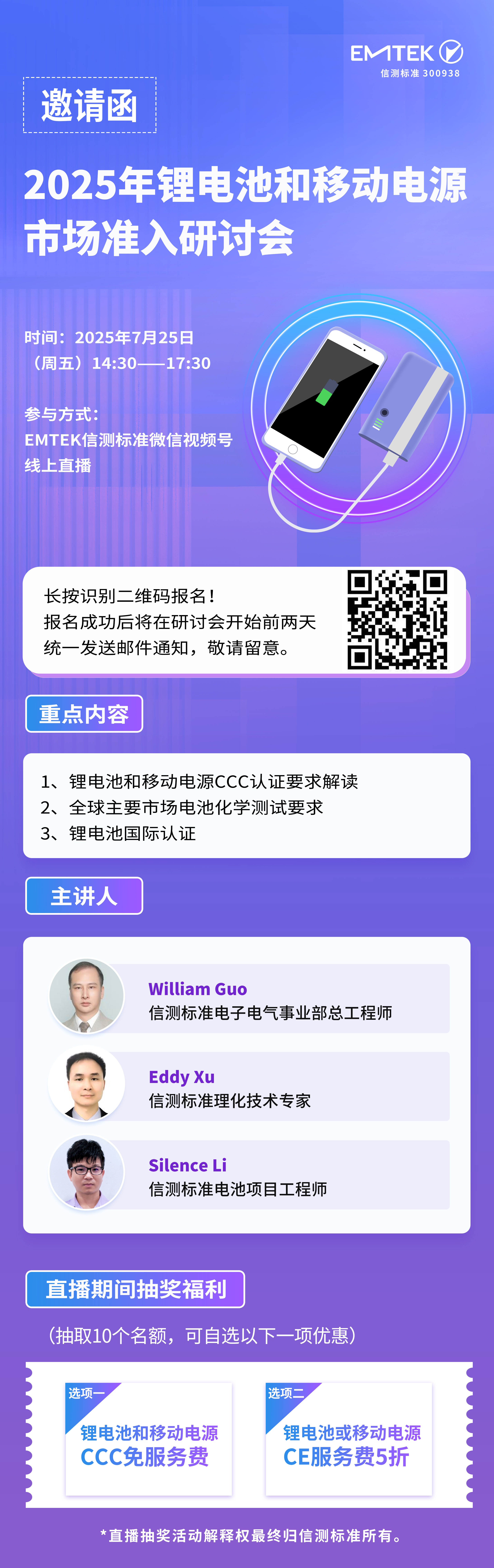 邀請函|與您相約7月25日2025年鋰電池和移動電源市場準(zhǔn)入線上研討會