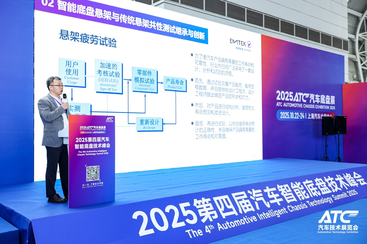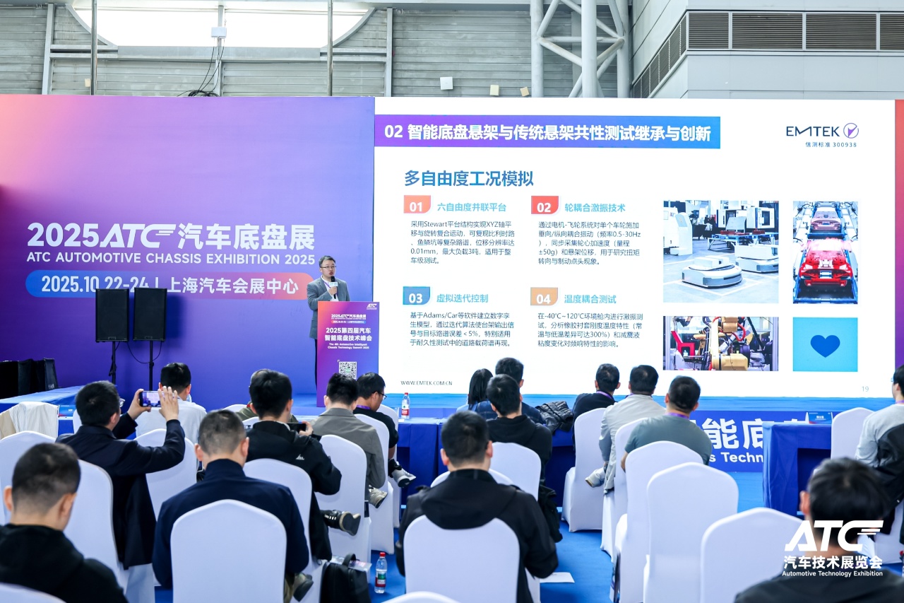 10月22日-24日,2025上海汽車底盤系統(tǒng)技術(shù)展覽會(ATC汽車底盤展)在上海汽車會展中心(嘉定)盛大開幕。本屆展會規(guī)模達28,000平方米,吸引了全產(chǎn)業(yè)鏈400余家展商及品牌參展,并同期舉辦10+場技術(shù)峰會與采購配對會等活動。EMTEK信測標準精彩亮相展會,圍繞汽車智能底盤檢測技術(shù)方案,鏈接產(chǎn)業(yè)資源,助力行業(yè)安全合規(guī)與技術(shù)創(chuàng)新,并以《汽車智能底盤懸架測試研究》為主題參與2025第四屆汽車智能底盤技術(shù)峰會熱點演講,與海內(nèi)外行業(yè)專家和現(xiàn)場觀眾進行了深度分享交流。