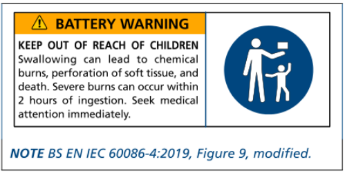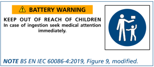 硬幣鋰電池(不管尺寸)和直徑不小于 16mm 的 紐扣電池,需要符合 BS EN IEC 60086-4:2019 要求;
