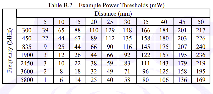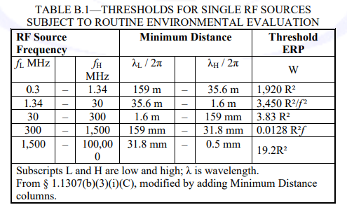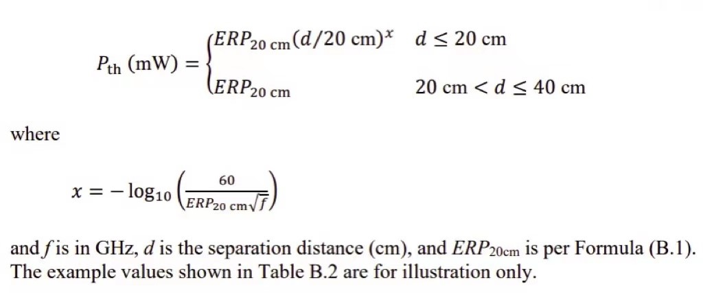 提供基于SAR豁免替代方案——根據(jù)頻率與距離關(guān)系計算ERP閾值(MPE)