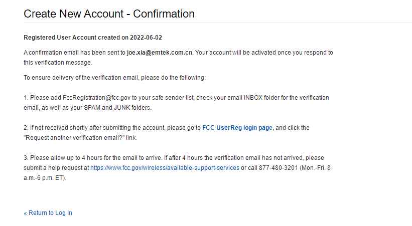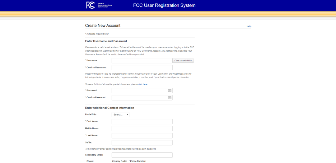 **請(qǐng)輸入有效的電子郵件地址。當(dāng)您使用FCC用戶名帳戶登錄FCC用戶注冊(cè)系統(tǒng)和其他系統(tǒng)時(shí),此電子郵件地址將用作您的用戶名。任何與您的用戶名帳戶相關(guān)的通知都將發(fā)送到您提供的電子郵件地址。可以檢查郵件地址有效性。
