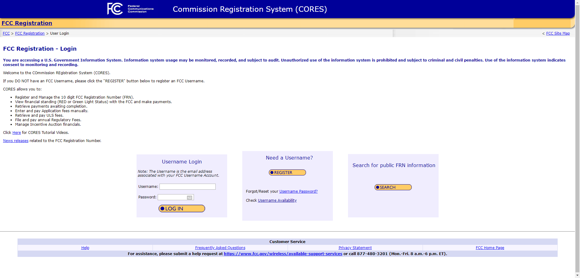 美國(guó)FCC發(fā)布DA 22-508號(hào)公告,將于2022年7月15日關(guān)閉舊的FRN注冊(cè)系統(tǒng)the legacy Commission Registration System(CORES),開(kāi)始使用新版本的系統(tǒng)(CORES2)。差異主要在于新版本的系統(tǒng)要求用戶繳納年費(fèi)。