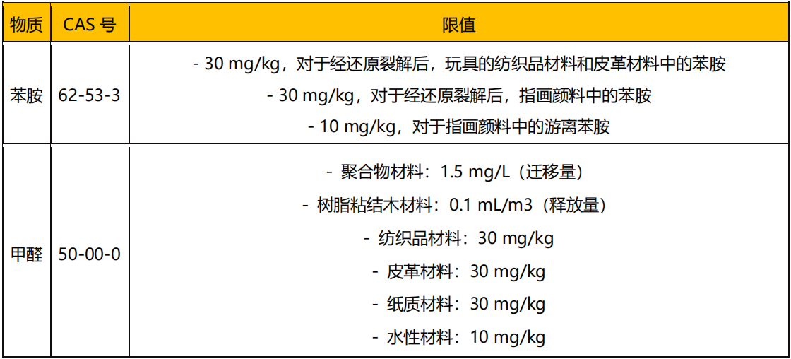 關(guān)于苯胺和甲醛的修訂將于 2022 年 12 月 15 日生效。該修訂不適用于在 2022 年 12 月 15 日前投放英國(guó)大不列顛市場(chǎng)的玩具。