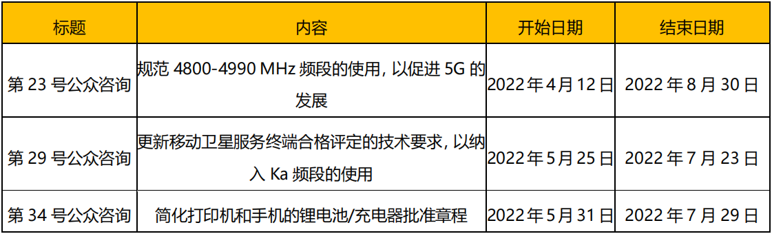 2022 年 6 月消息,巴西國(guó)家電信管理局(ANATEL)發(fā)布了多項(xiàng)公眾咨詢,詳情請(qǐng)見(jiàn)下表:
