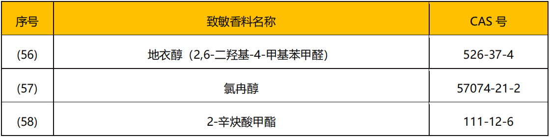 b. 由于 2-辛炔酸甲酯將成為禁用致敏香料,它將在附表 2 第 3 部分第 11 點(diǎn)的第二個(gè)表格(須進(jìn)行標(biāo)簽的致敏香料)中去除。