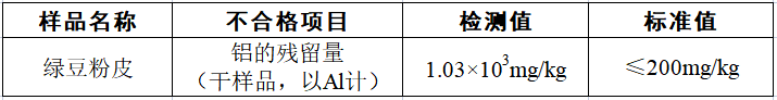 《食品安全國家標準 食品添加劑使用標準》(GB 2760—2014)中規(guī)定,粉絲、粉條中鋁的最大殘留限量值(干樣品,以Al計)為200mg/kg。