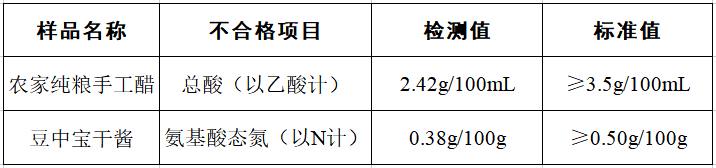 《食品安全國家標準 食醋》(GB 2719—2018)中規(guī)定,食醋中總酸(以乙酸計)≥3.5g/100mL,該批次產(chǎn)品中總酸(以乙酸計)檢測值既不符合食品安全國家標準規(guī)定,也不符合標簽明示值規(guī)定“總酸≥3.5g/100mL”。