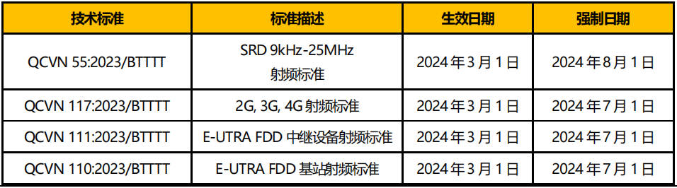 MIC計(jì)劃從2024年7月1日起強(qiáng)制實(shí)施標(biāo)準(zhǔn)QCVN 117:2023/BTTTT 并取代QCVN 117:2020/BTTTT。