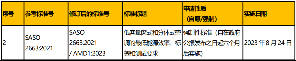 SASO 2663:2021 《低容量窗式和分體式空調(diào)的最低能效要求、標(biāo)簽和測(cè)試》,以澄清一些技術(shù)要求,以確保符合能效要求。