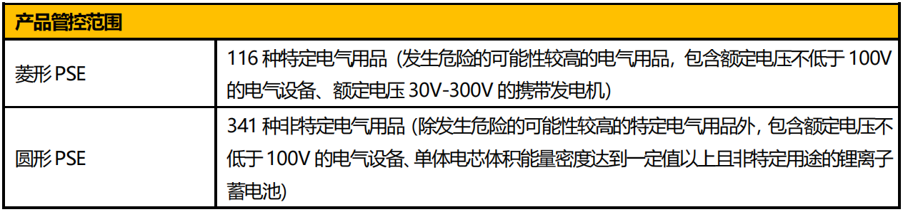 PSE 是日本政府針對電子產(chǎn)品的強制性安全認(rèn)證。根據(jù)日本經(jīng)濟產(chǎn)業(yè)?。∕inistry of Economy, Trade and Industry,METI)的電氣用品安全法要求,通用電氣設(shè)備、額定電壓30V-300V 的攜帶發(fā)電機、單體電芯體積能量密度達(dá)到一定值以上,且非特定用途的鋰離子蓄電池,在出口至日本銷售前需取得 PSE 認(rèn)證。