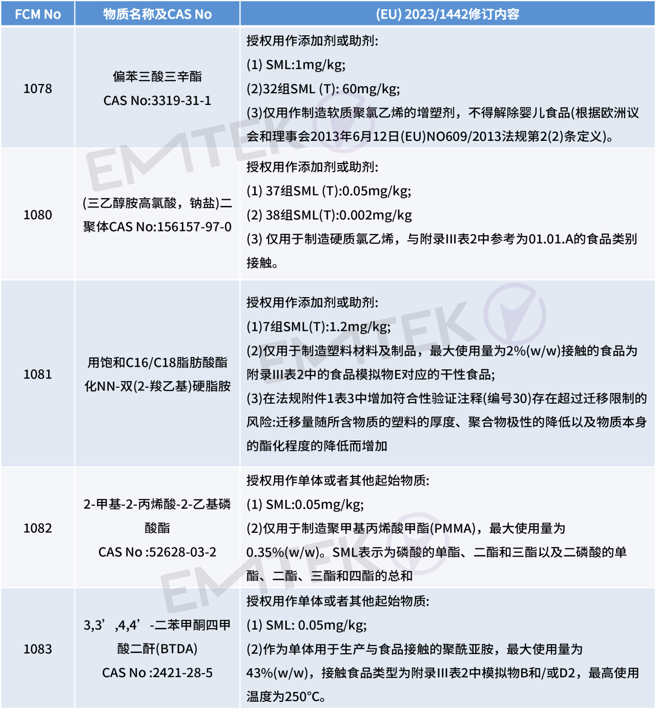修訂鄰苯二甲酸酯[FCM No 157(DBP)、FCM No159(BBP)、FCM No 283(DEHP)、FCM No 728(DINP)、FCM No 729(DIDP)、FCM No 1085(DIBP)]的授權(quán)要求