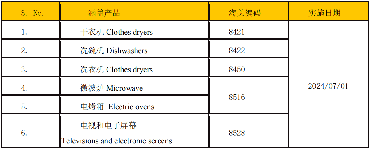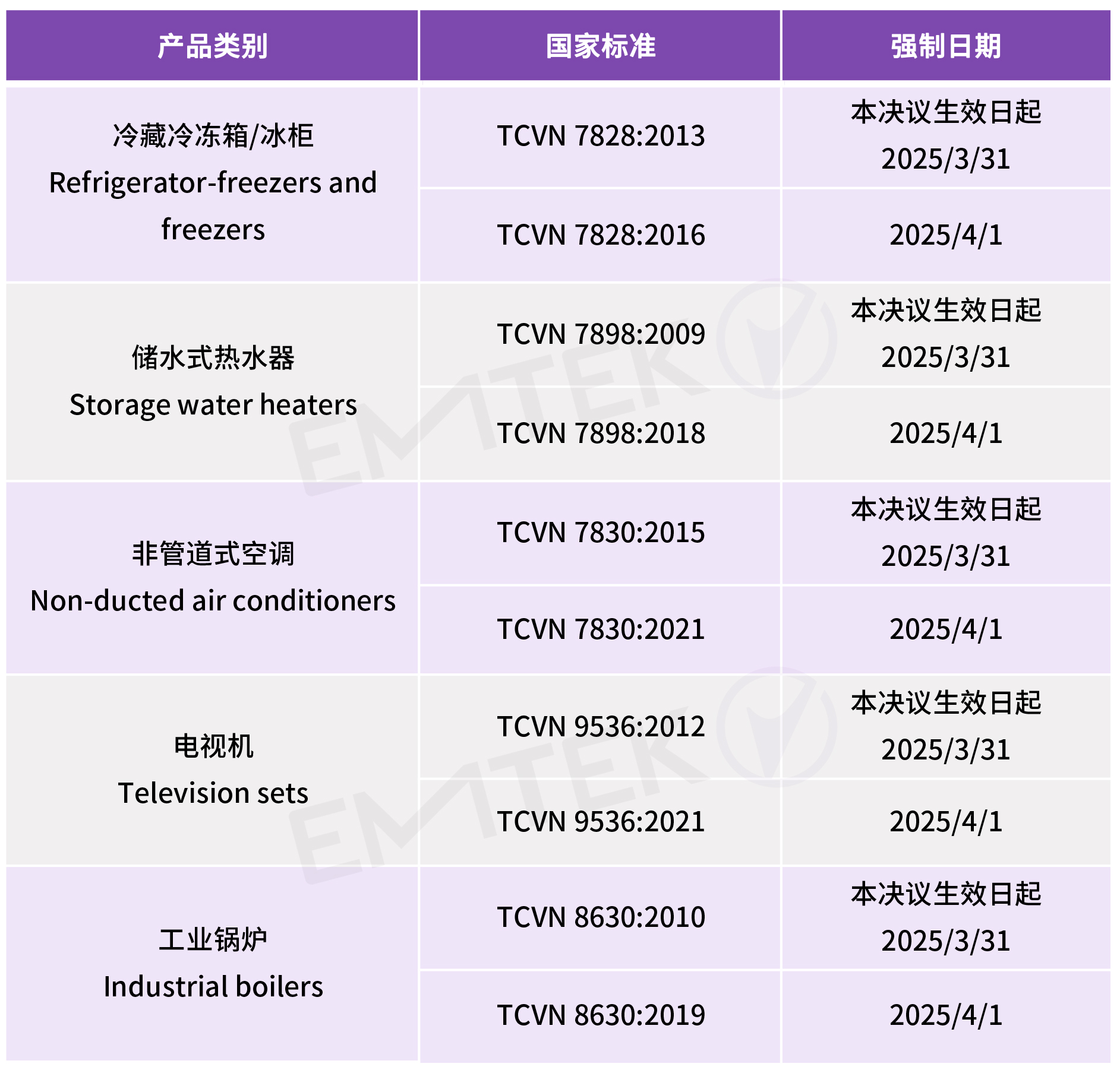 更新目前已列管的五類產(chǎn)品能效標(biāo)準(zhǔn),將于2025 年 4 月1 日強(qiáng)制實(shí)施最新版。