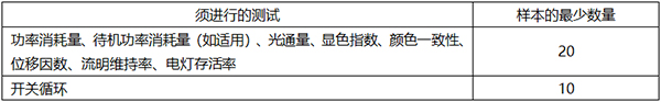(注:進(jìn)行以上測(cè)試時(shí),須使用相同樣本。用于開關(guān)循環(huán)測(cè)試的燈不得用于其它測(cè)試。)