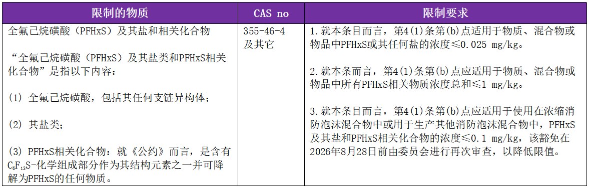2023年8月8日,歐盟官方公報發(fā)布法規(guī)(EU) 2023/1608,正式將全氟己烷磺酸(PFHxS)及其鹽和相關(guān)物質(zhì)列入歐盟POPs法規(guī)附件I禁用物質(zhì)清單,至此,歐盟POPs法規(guī)禁用物質(zhì)清單由28項增加至29項, 該新修訂將于2023年8月28號正式生效。