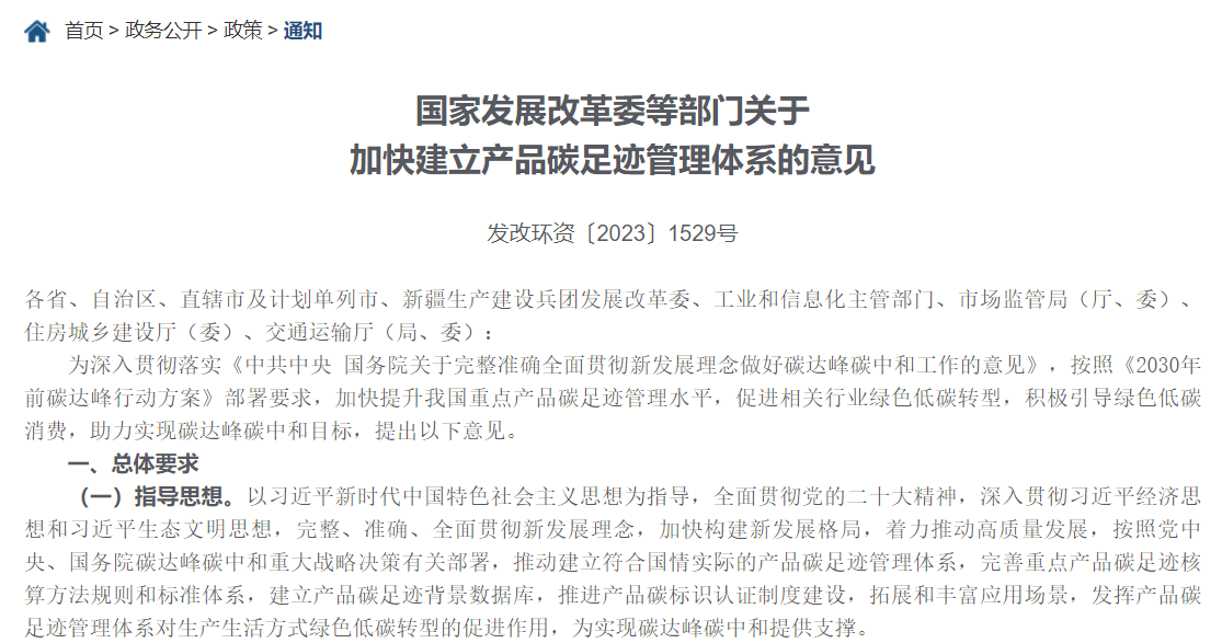 中國(guó)五部委聯(lián)合發(fā)布了關(guān)于加快建立產(chǎn)品碳足跡管理體系的意見