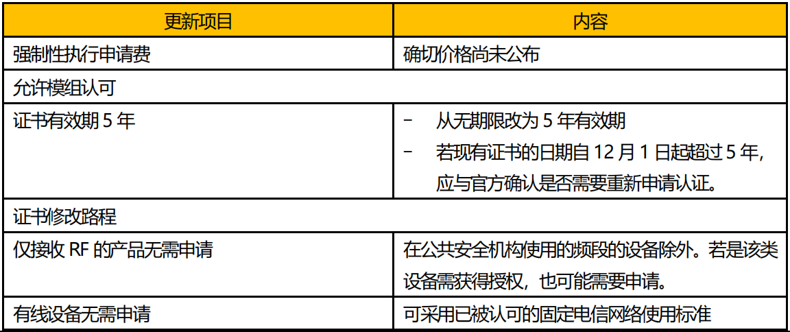 中國國家無線電管理委員會(huì)(SRRC)更新型號(hào)核準(zhǔn)代碼編碼規(guī)則以及證書模板,并已于 2023 年 12 月 1 日實(shí)施,具體更新如下: