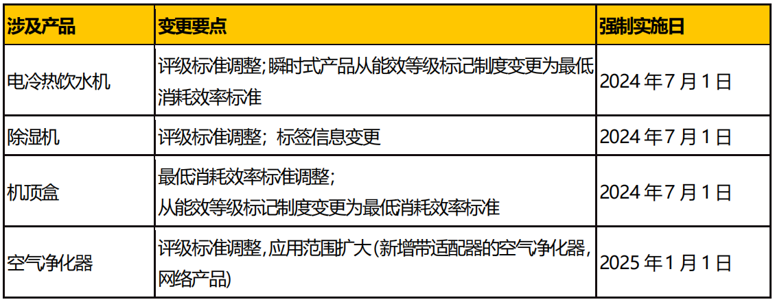 2023 年底,國家發(fā)展改革委、市場監(jiān)管總局組織制修訂了《中華人民共和國實(shí)行能源效率標(biāo)識(shí)的產(chǎn)品目錄(第十六批)》及相關(guān)實(shí)施規(guī)則,具體如下: