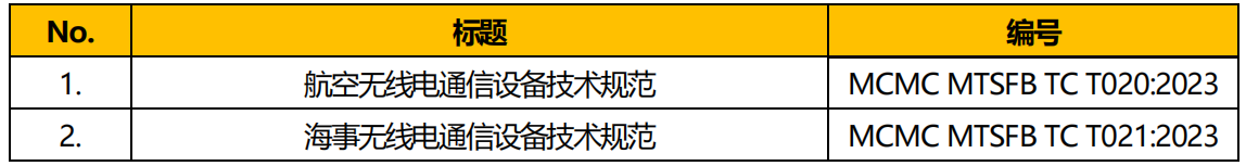 2024 年2 月13 日,馬來西亞標(biāo)準(zhǔn)與工業(yè)研究院(SIRIM)在其網(wǎng)站上發(fā)布公告,提醒航空和海事無線電通信設(shè)備應(yīng)符合最新的技術(shù)規(guī)范。這是由于馬來西亞通信和多媒體委員會(huì)(MCMC)已于2023 年10 月31 日批準(zhǔn)并發(fā)布了兩項(xiàng)用于通信和混合設(shè)備認(rèn)證的新技術(shù)規(guī)范,如下所列。