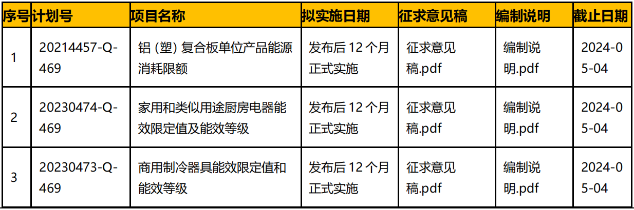 《商用制冷器具能效限定值和能效等級》等 3 項(xiàng)國家標(biāo)準(zhǔn)的征求意見稿,現(xiàn)公開征求意見。請于2024年5月4日前將意見反饋給組織起草部門。