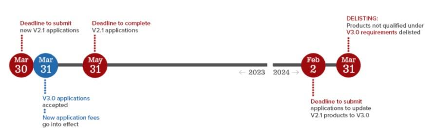 針對現(xiàn)有申請,在寬限期內(nèi),申請人可以將CoC 續(xù)展,期限最長為一年。然而,自2024 年 5 月 1 日起,將不再允許更新現(xiàn)有CoC。相反,應(yīng)通過提交平行比較(PBC)申請來更新相關(guān)設(shè)備的現(xiàn)有認(rèn)證并符合最新的技術(shù)規(guī)范要求。