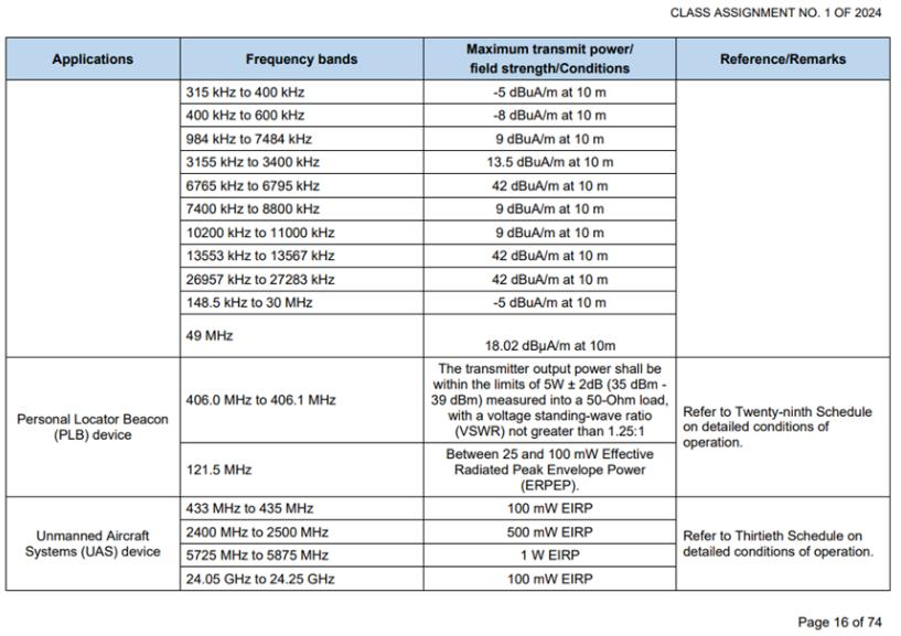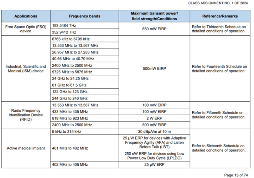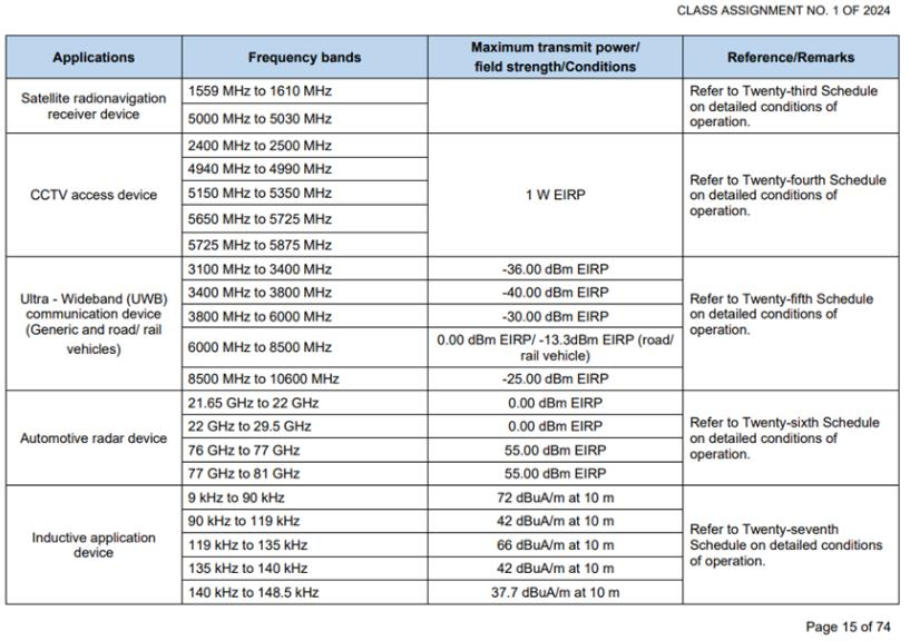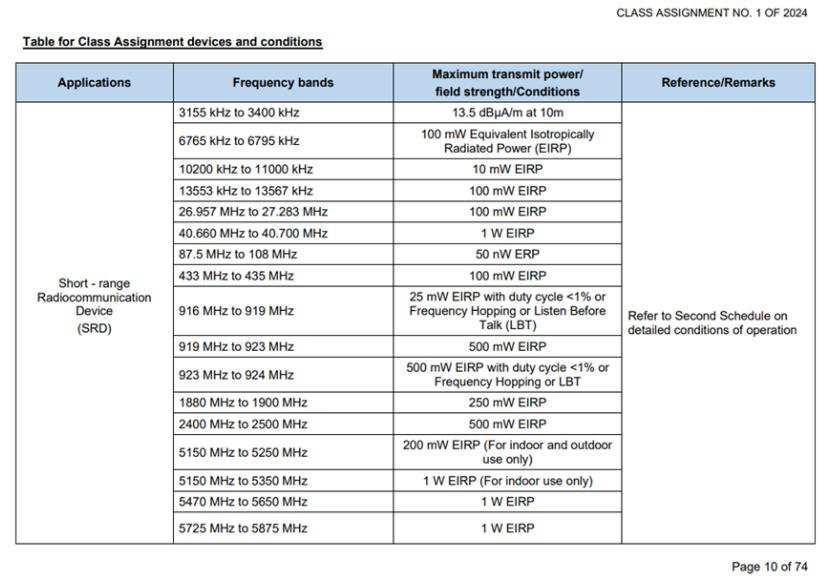 2024 年2 月28 日,巴林電信監(jiān)管局(TRA)發(fā)布了題為《技術規(guī)范 - 型式認證要求》的文件。與此前的《SRD設備型式認證》規(guī)定相比,值得注意的是該文件中增加了如下頻段的技術要求: