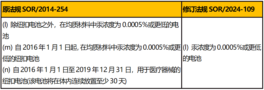 2024年6月19日,加拿大發(fā)布了SOR/2024-109,對含汞產(chǎn)品法規(guī)SOR/2014-254進行了修訂。修訂法規(guī)將自官方公報公布之日起一年后,也就是2025年6月19日生效。