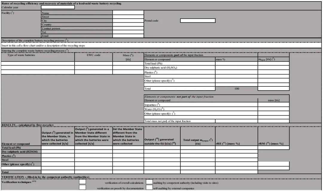 該法案詳細(xì)規(guī)定了電池回收效率和材料回收率的計(jì)算文件填報(bào)方法,并為鉛酸廢電池、鋰基廢電池、鎳鎘廢電池、其他廢電池分別設(shè)定相應(yīng)的文件格式。