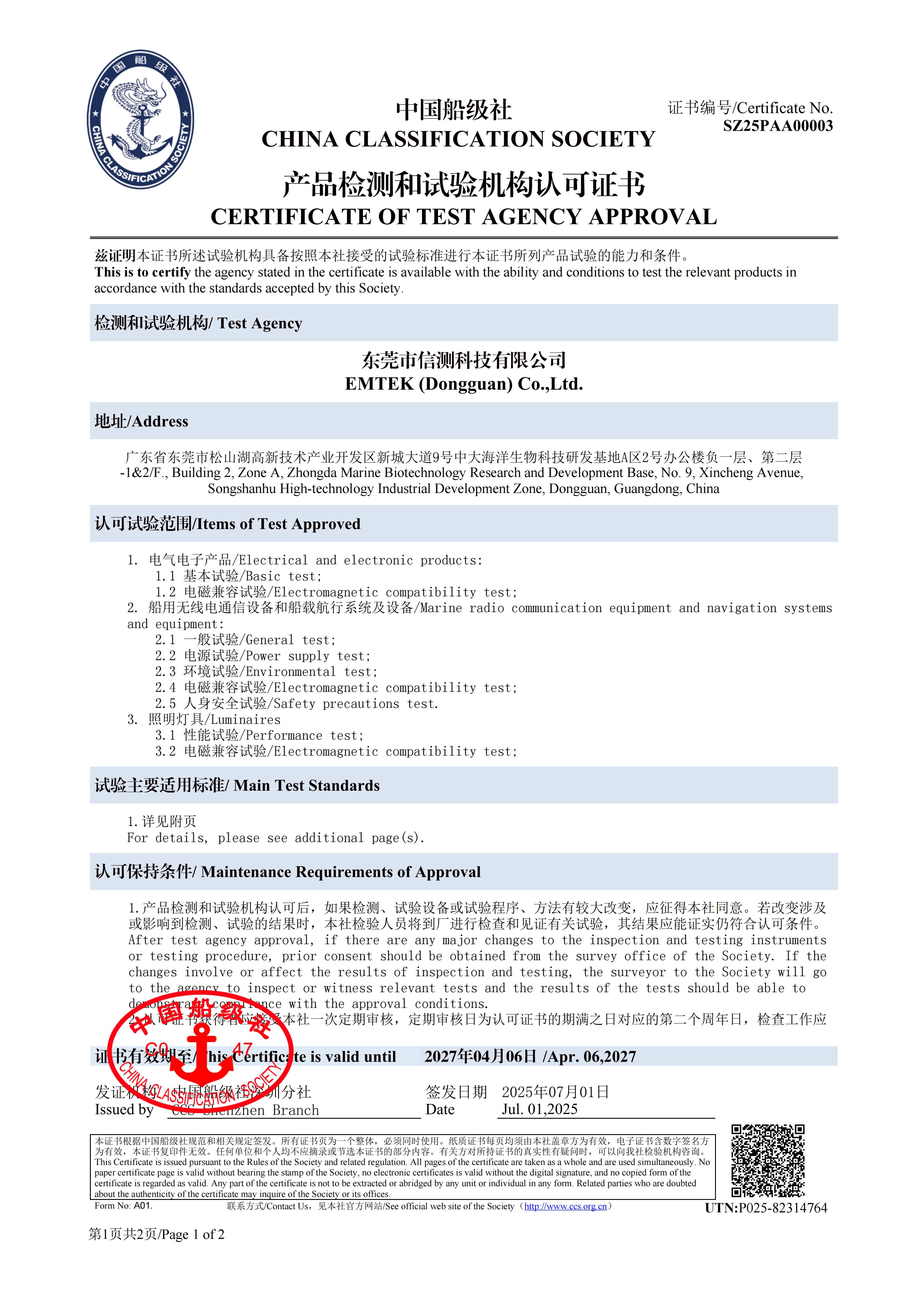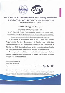 Qualifications of Dongguan Lab