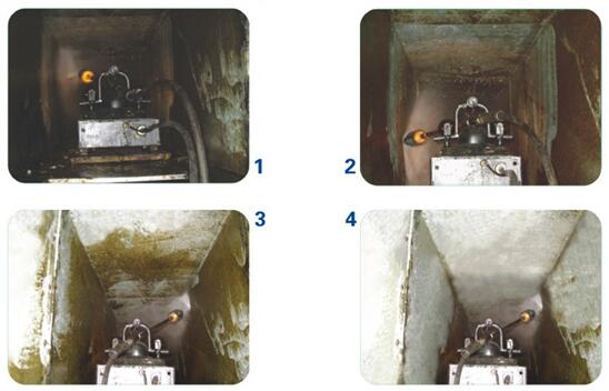 機(jī)器人清洗大大提升工程速度,20米長的煙道只需一天時間,是人工清洗速度的3到4倍