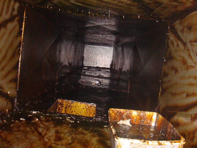 煙道、煙罩常年處于高溫工作環(huán)境,油煙氣化形成積油、積炭或油膩的膠狀物,這三種物質(zhì)非常容易引起火災(zāi)。若不經(jīng)常清洗,積油越積越多 ,順著煙罩自然倒流,不僅影響飯菜質(zhì)量,而且還有損酒店信譽(yù)。同時(shí),煙道中易寄生老鼠、蟑螂,不符合國(guó)家衛(wèi)生標(biāo)準(zhǔn),油膩膠狀物長(zhǎng)期扒附在金屬表面,增加煙道和風(fēng)機(jī)工作負(fù)荷,還會(huì)腐蝕金屬材料,大地縮短煙道及風(fēng)機(jī)使用壽命。